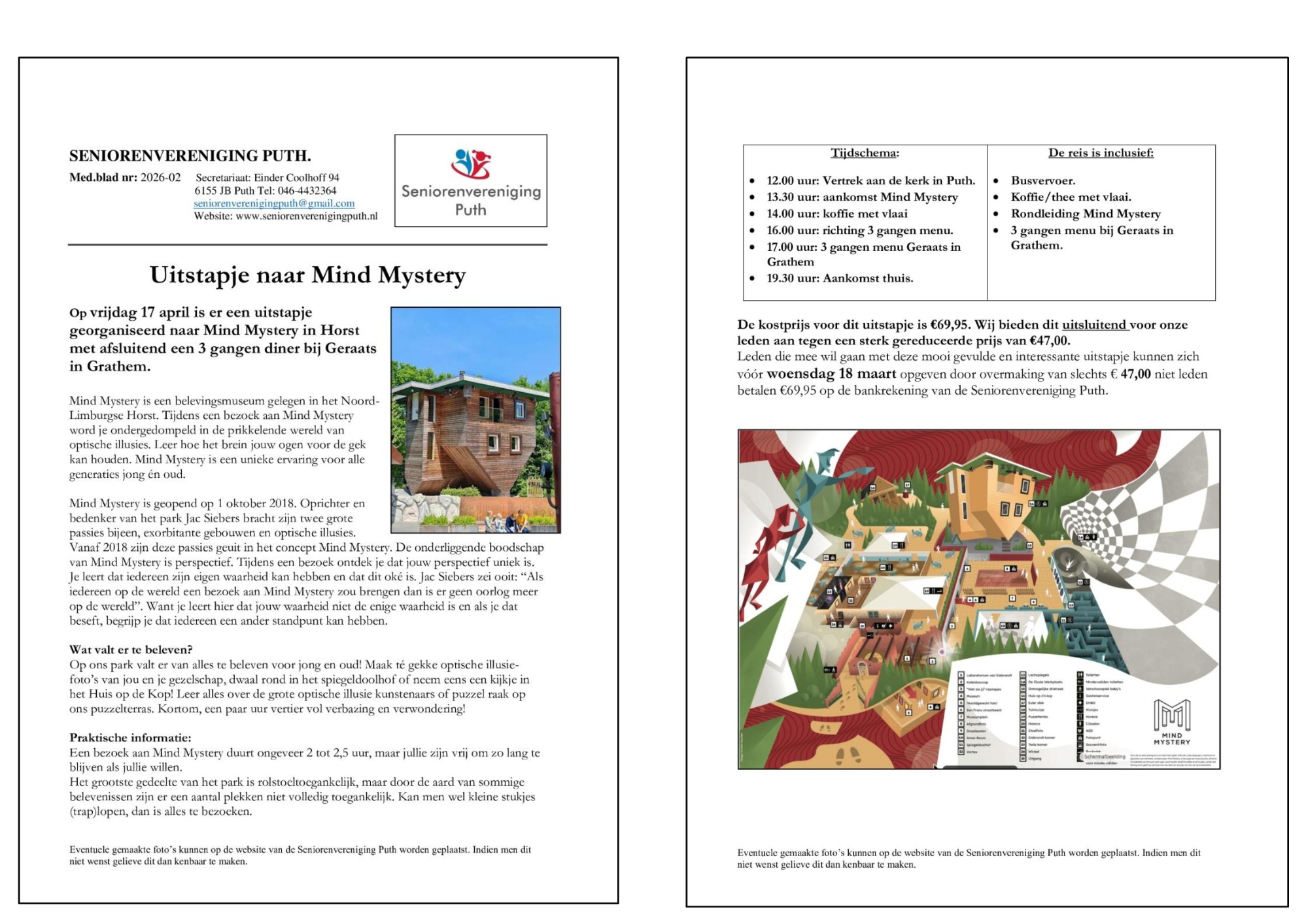 - Vrijdag 17 april, uitstapje naar Mind Mystery in Horst.